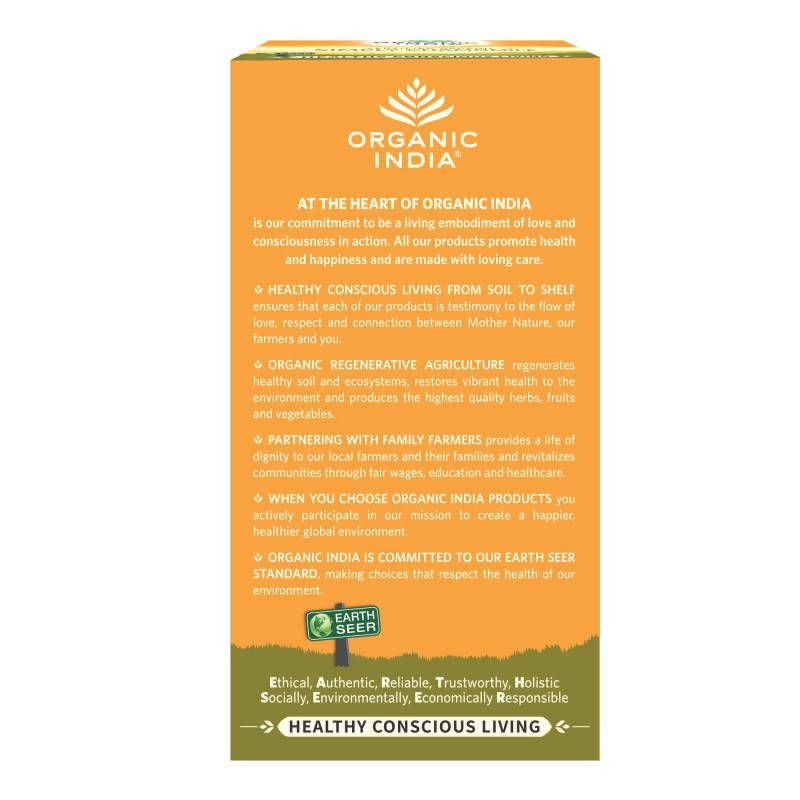 Calming & Relaxing Chamomile is cherished as a flavorful herb renowned for its natural ability to alleviate anxiety and diminish stress. Organic India Calming Chamomile blend provides a sensuously soothing experience with its aromatic fragrance, earthy taste, and gentle sweetness. Enjoy daily to maintain serenity and relaxation.