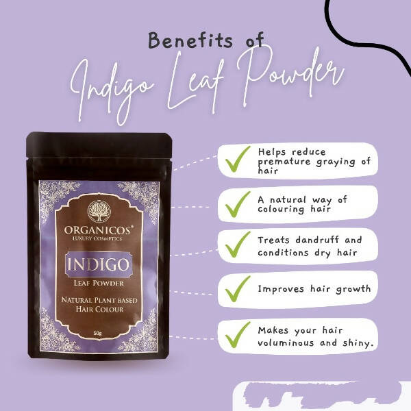 - Organicos Indigo Hair Color is derived from natural indigo leaf powder