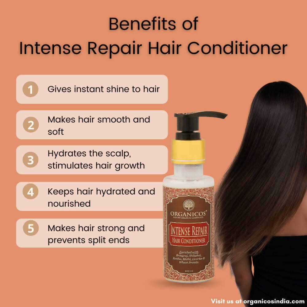 - Organicos introduces a luxurious Intense Repair Conditioner designed to impart smooth, shiny, and lush hair. This nourishing and hydrating formula is suitable for all hair types and can be applied following each shampoo to aid in fortifying hair care.