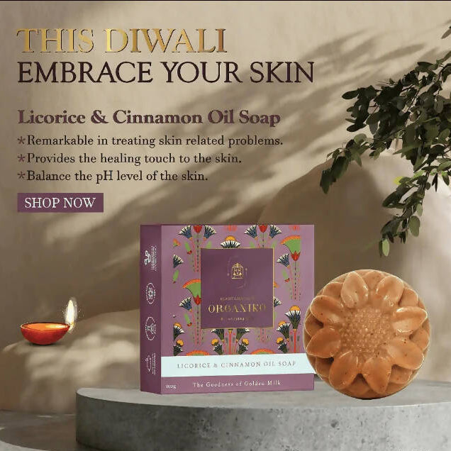 This Licorice & Cinnamon Oil Soap serves as a soothing emollient, effectively rejuvenating damaged skin and diminishing blemishes. It also aids in balancing your skin's pH level. The soap's licorice extract harbors skin-illuminating properties that enhance texture and provide a gradual, radiant glow. It addresses uneven and coarse skin texture, dark spots, tanning, and a lackluster complexion. Furthermore, it curtails melanin production, resulting in a luminous and healthy appearance.