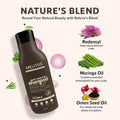 - Fusion of 5 Essential Oils: This shampoo features a harmonious blend of five essential oils, including Argan, Coconut, Jojoba, Olive, and Rosemary Oil. These oils deliver intensive treatment for hair loss by offering deep nourishment, hydration, and protection.