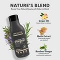 - Enhances and Rejuvenates Hair: Enriched with Bamboo Vinegar, Tea Tree Oil, Ginger, Rosemary Oil, and essential Vitamins, it enhances and rejuvenates the hair, boosting its health and vigor without sulfates, parabens, or harsh chemicals.