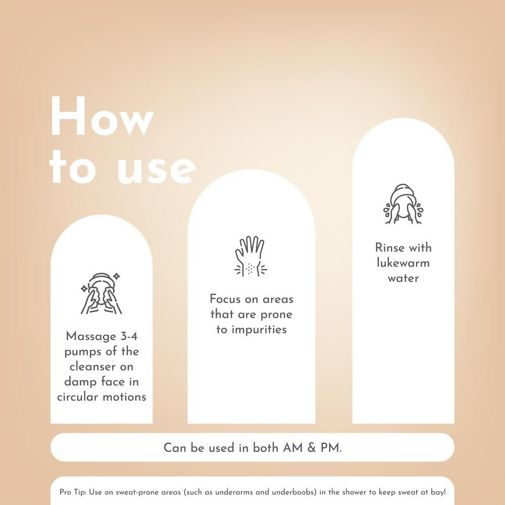 - Rinse with lukewarm water. Gentle enough for both morning and evening use. Pro Tip: Apply to sweat-prone areas (such as underarms and underboobs) in the shower to minimize perspiration and maintain freshness throughout the day!