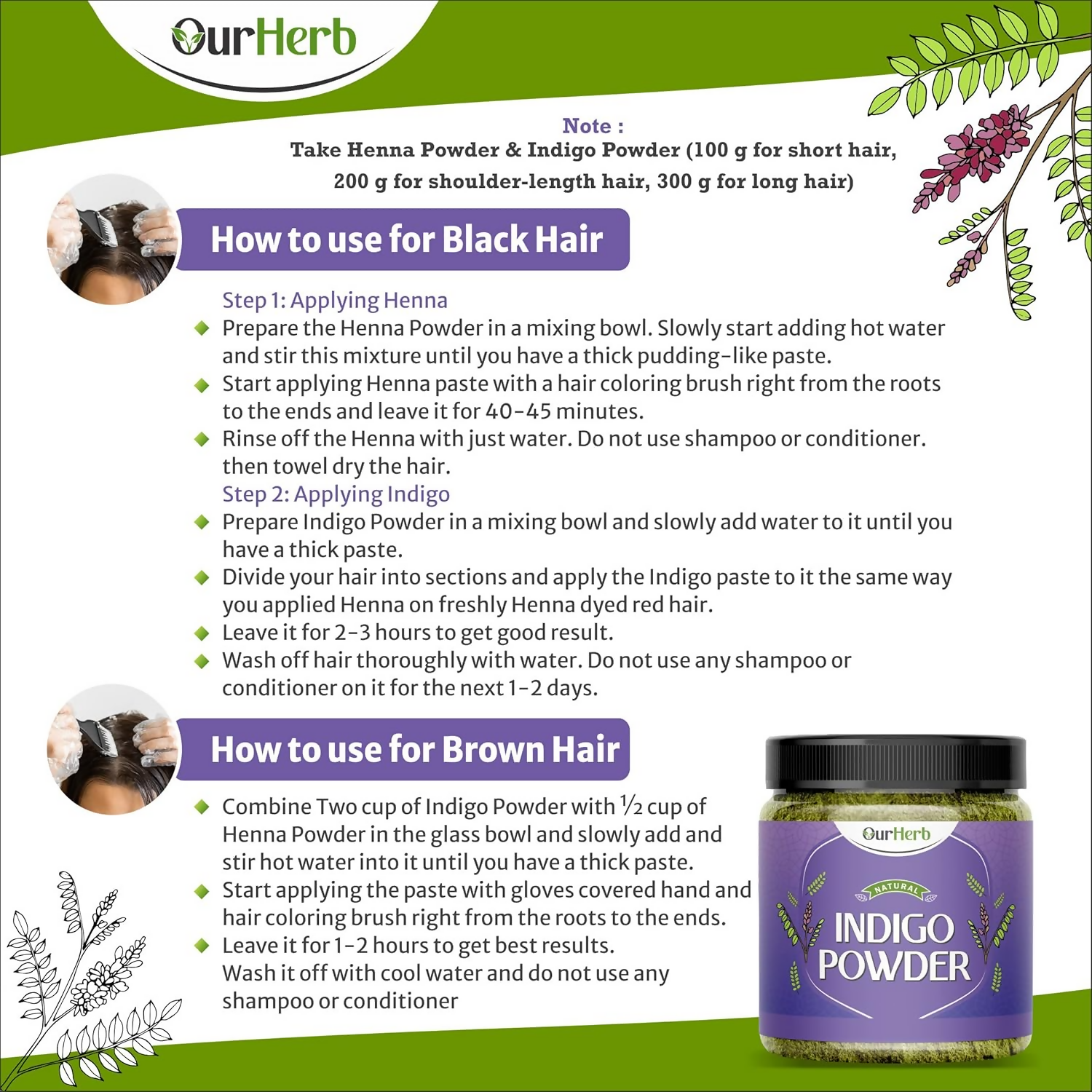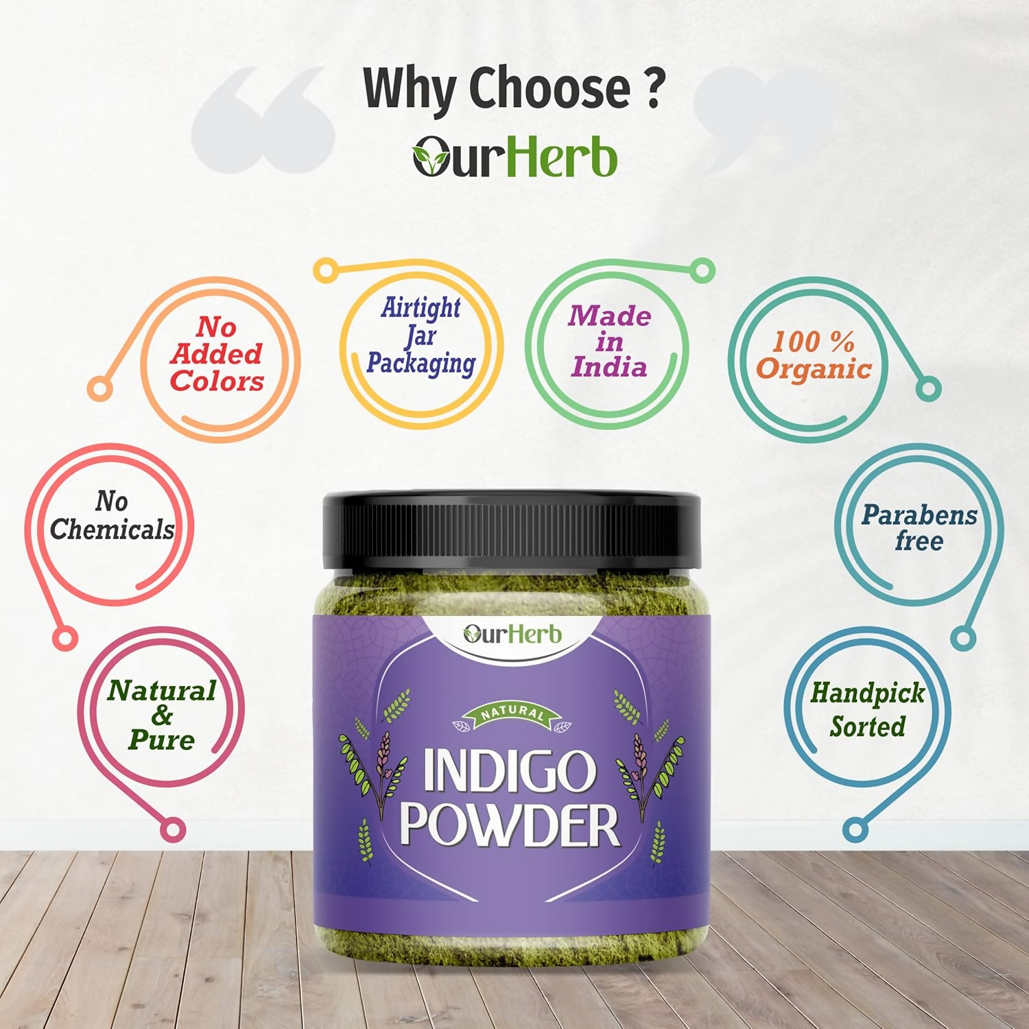 OurHerb Pure & Organic Indigo Leaves Powder For Black Hair Colour