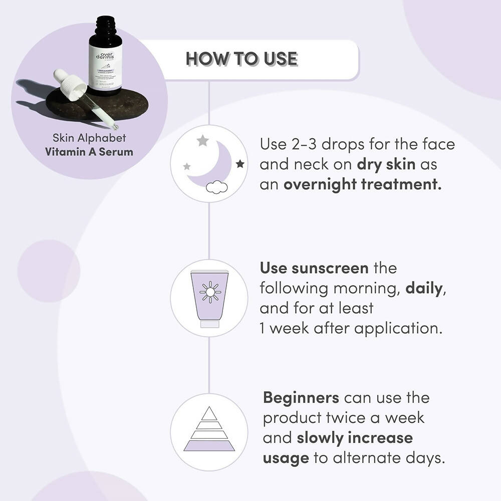 - Incorporate the Over Dermis Skin Alphabet Vitamin B Serum into your PM routine before applying the Over Dermis Skin Alphabet Vitamin A Serum.