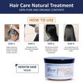 - Generously apply the Keratin Protein Hair Mask to clean, damp hair.