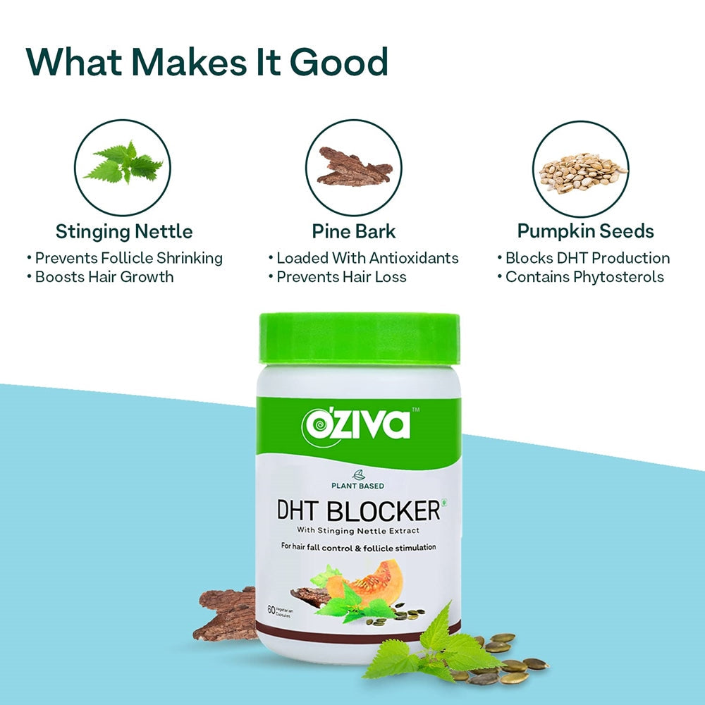 OZiva Plant Based DHT Blocker For Hair Fall Control With Stinging Nettle Extract