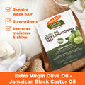 - Rejuvenating hydration for vibrant hair & scalp. This therapeutic deep treatment conditioner enriched with Extra Virgin Olive Oil and Palmer's Botanical Scalp Complex—a unique fusion of Nettle, Sage, and Hyssop—fortifies hair and enriches the scalp with a high concentration of vitamins and antioxidants. Keratin and Soy Protein bolster the hair's structure. Featuring a light, clean scent, it leaves hair soft and silky with a lasting shine. Infused with Extra Virgin Olive Oil, Jamaican Black Castor Oil, and Vitamin E, Palmer's Extra Virgin Olive Oil is Cold Pressed, ensuring maximum antioxidant protection around the hair shaft.