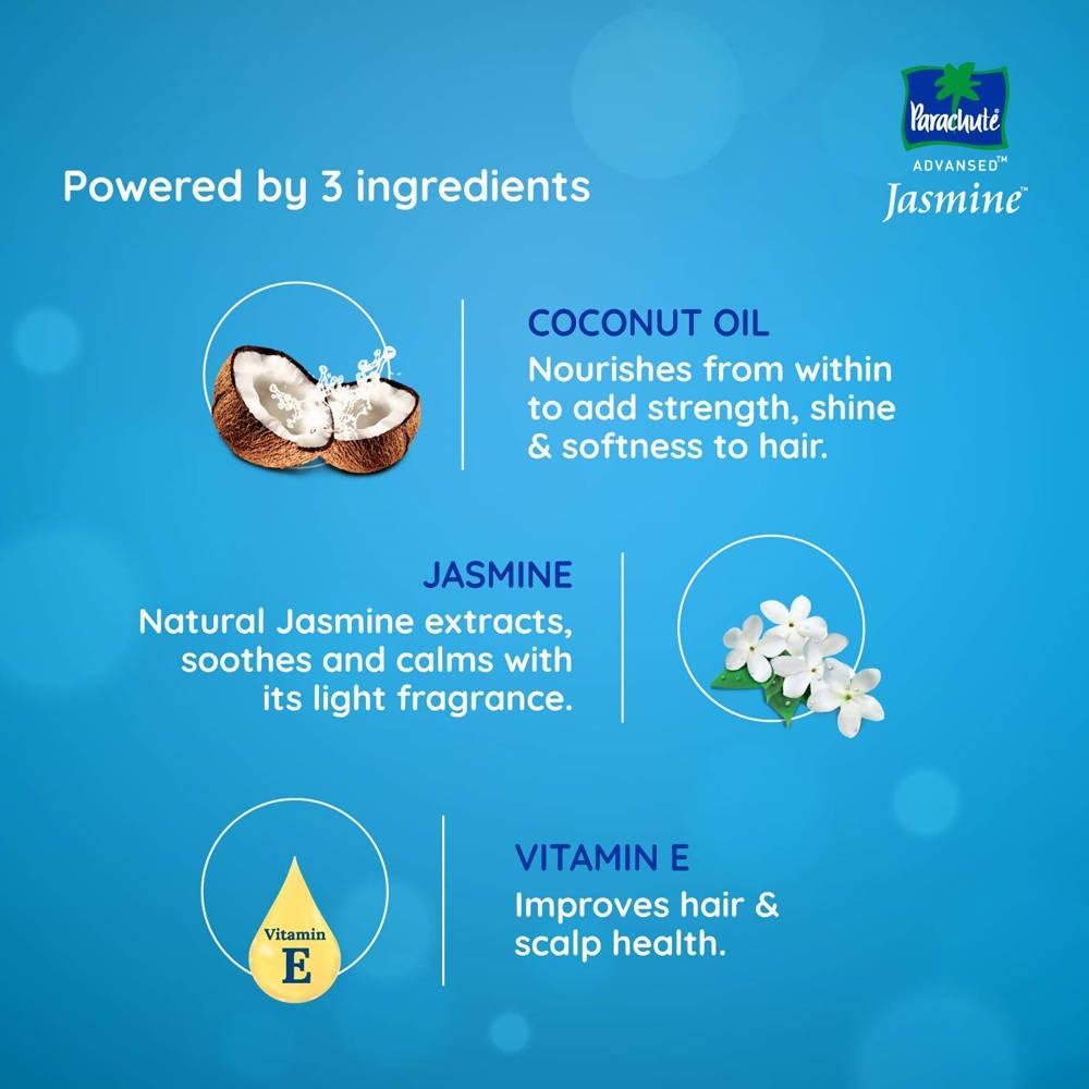 - Parachute Advansed Jasmine Coconut Hair Oil provides nourishment and fortification to your hair, imparting a glossy healthiness