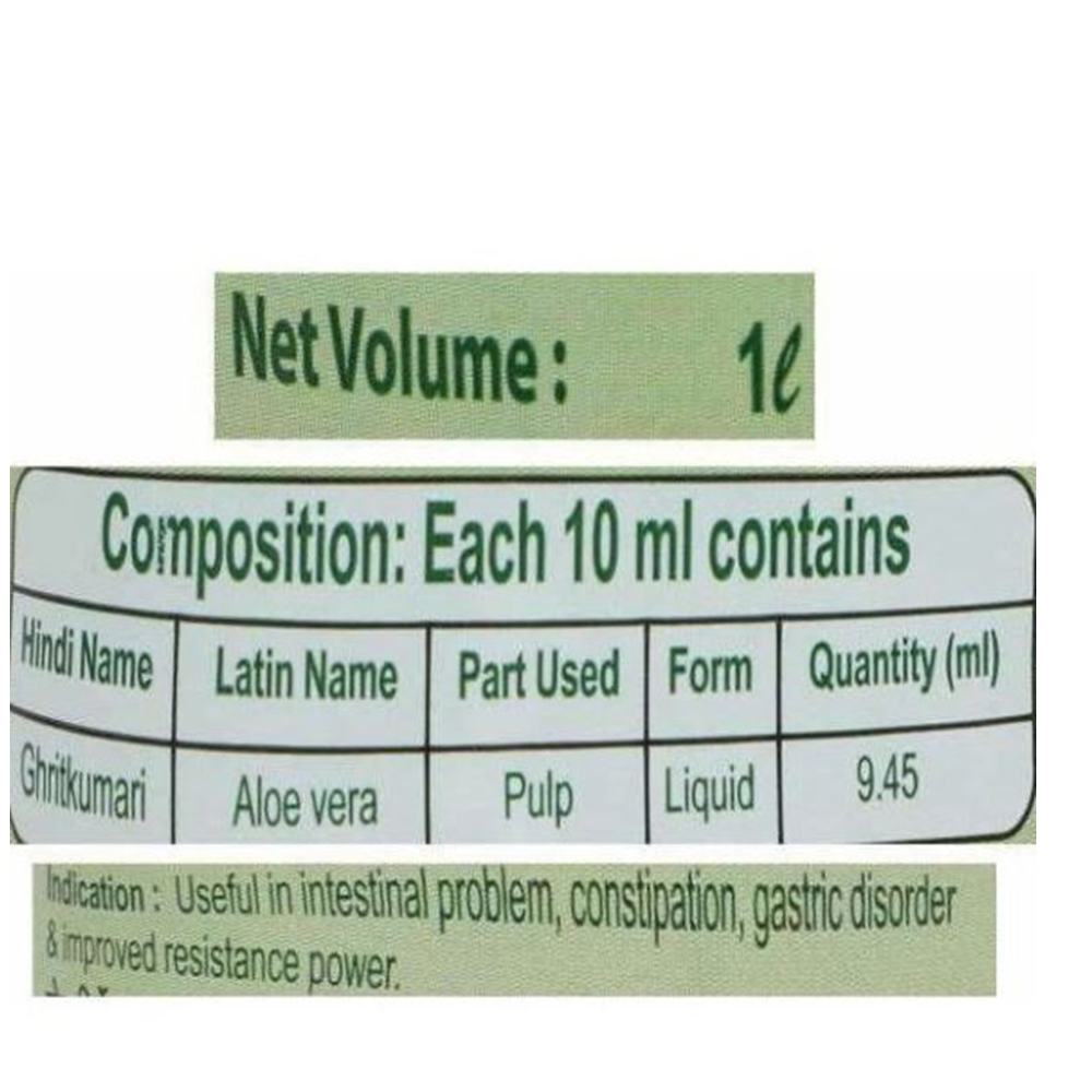 Every 10 ml of Patanjali aloe vera juice with fibre and orange flavor includes: