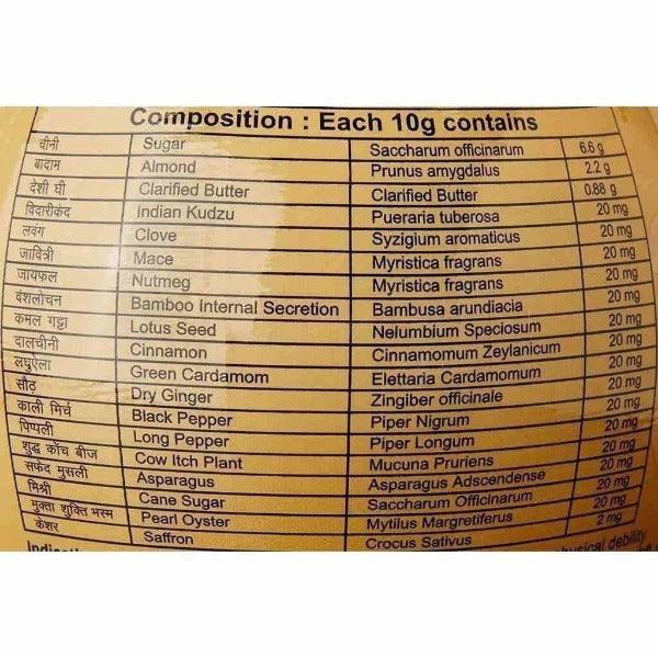 Patanjali Badam Pak is renowned for its invigorating flavor. It comprises: