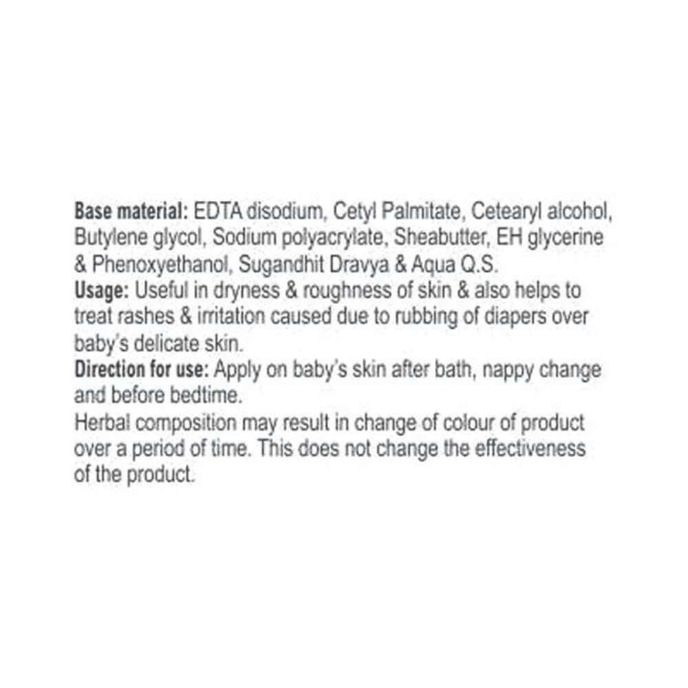- Apply to baby’s skin after bath, during nappy changes, and before bedtime.