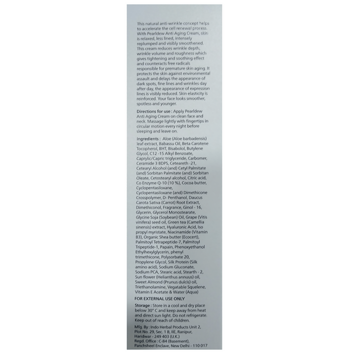- Pearldew Anti-Aging Cream combines powerful components to naturally revitalize your skin. It shields mature skin cells from the effects of aging. Furthermore, it revitalizes fibroblasts, encourages collagen production, and smooths out fine lines. This cream is crafted from a superior blend enriched with antibacterial and anti-inflammatory attributes, aiding in the management of oily skin and acne.