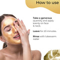 - Take a generous amount and distribute evenly on the face and neck. Leave on for 20 minutes and rinse with lukewarm water.