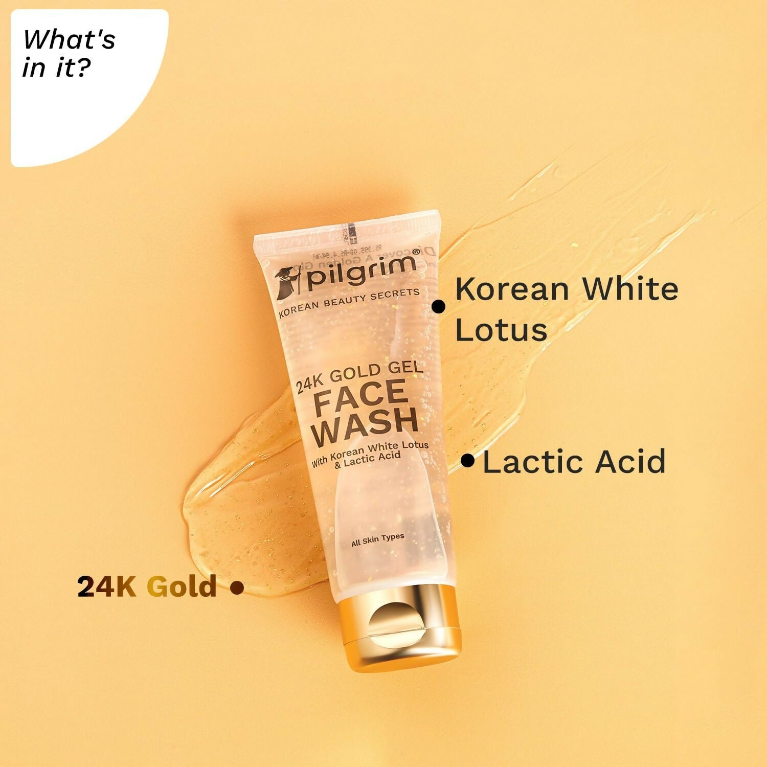 Pilgrim 24k Gold Gel Facewash with Korean White Lotus For Radiant Skin, Diminishes Dark Spots, and Enhances Skin Texture