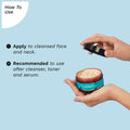 - Apply & massage gently over the face, neck, and other exposed areas.