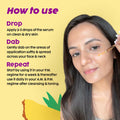 - Apply 2-3 drops, gently tap with fingertips in a circular motion & distribute it evenly over your face. Allow the serum to be thoroughly absorbed into your skin. Begin by using it 2-3 times weekly & subsequently incorporate it daily into your evening routine following cleansing & toning.