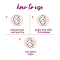 - Delicately massage in using your fingertips in small upward and outward circles.