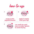 - Scoop up the desired amount of this delectable lip balm and apply it evenly onto your lips. It can effortlessly be used over or under your lipstick to prevent dryness