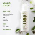 - After cleansing your face, take a small amount of toner and dab it onto your face either with a cotton ball or your hands.