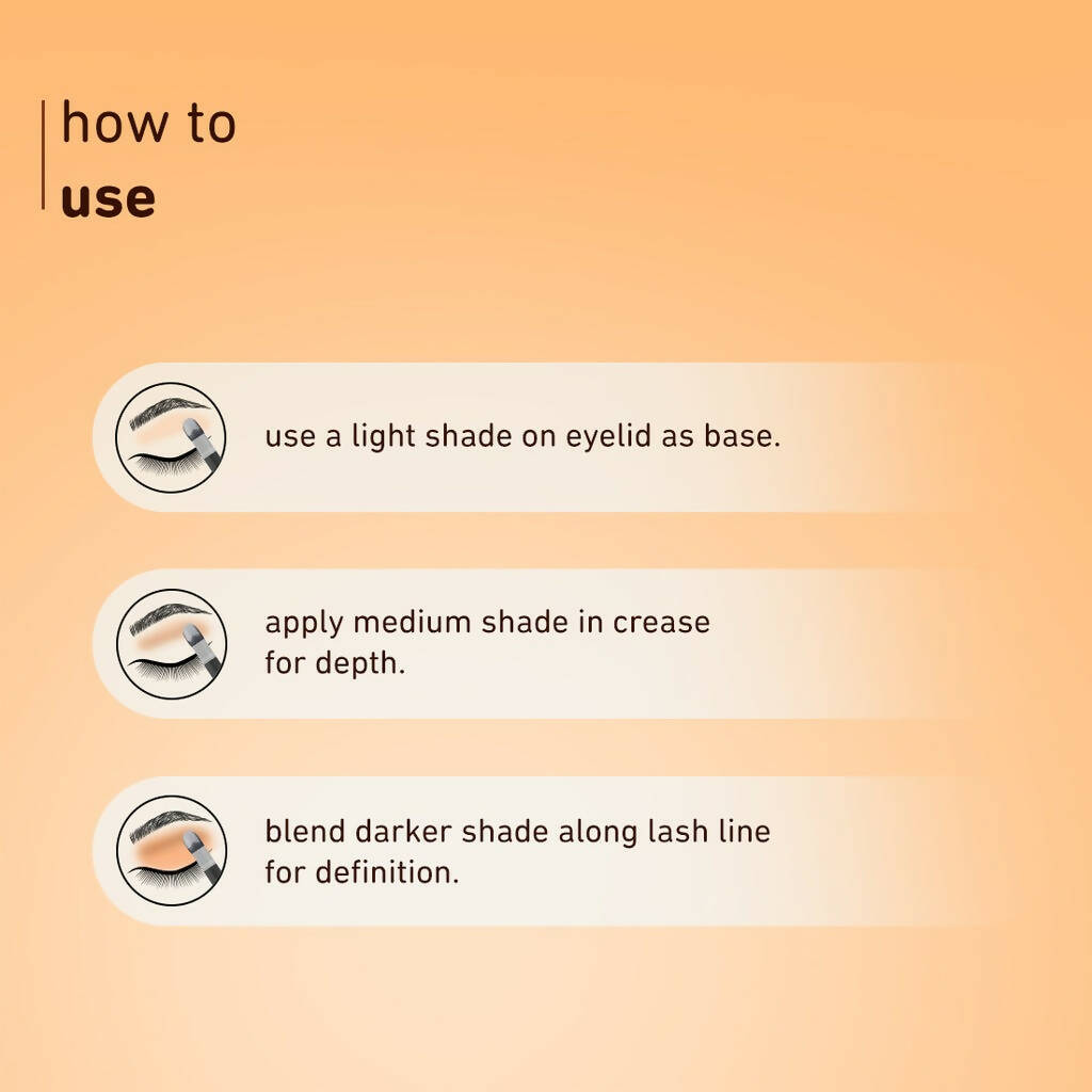Application Instructions:- Begin with a light hue on the eyelid as a base.