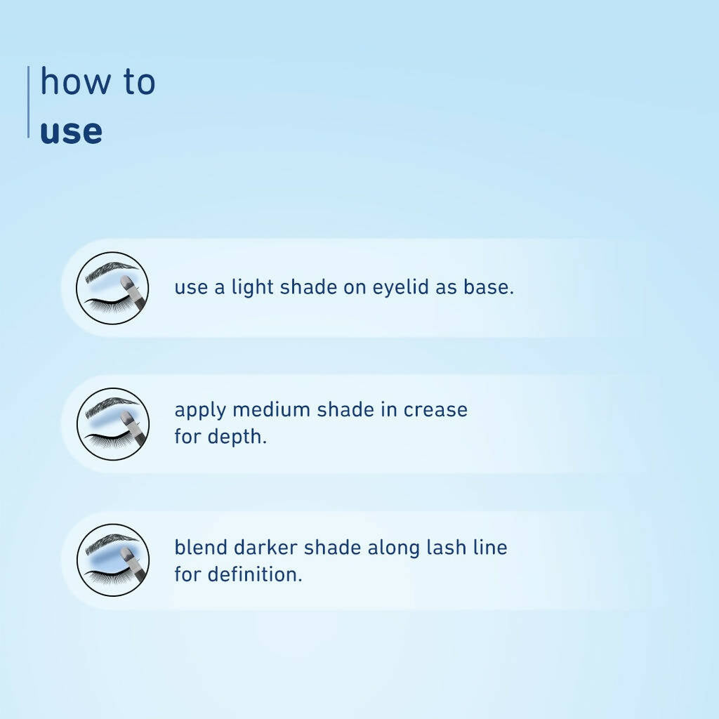 Instructions for Application:- Begin with a light hue on the eyelid as a foundation.