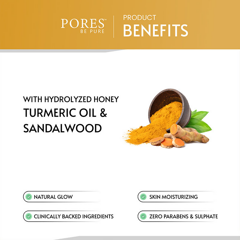 The natural goodness of turmeric and sandalwood added to Pores Be Pure Ubtan Face Scrub shields skin from free radical damage. It moisturizes the skin, making it look healthy and radiant. It reveals the skin's natural brightness while getting rid of all tanning stains and leaving the skin feeling fresh. It is ideal for all skin types. It aims to tackle common skin conditions like dryness and acne. Its anti-aging and anti-inflammatory effects give the skin a smooth, young appearance.