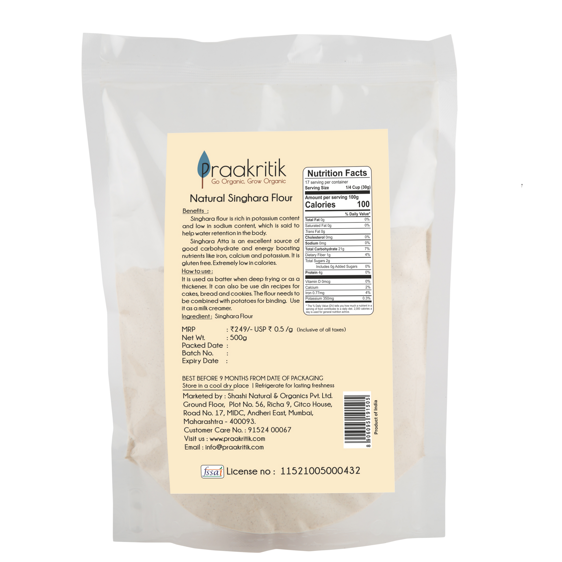 About the Product:- Singhara flour is abundant in potassium and has a low sodium level, which is believed to assist in maintaining body hydration. Singhara Atta is a superb source of beneficial carbohydrates and energy-enhancing nutrients such as iron and calcium. It is free from gluten and exceptionally low in calories.