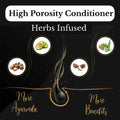About the Product:Our Premium Herbal High Porosity Conditioner is enriched with Avocado oil, Bhringaraj, Cocoa butter, Shea butter, specially formulated to nourish widely open cuticles and frizzy hair. It diminishes brittleness, dullness, and frizziness; Promotes a silky-smooth texture; Helps in sealing the cuticles; Provides a protective layer over the cuticles; Minimizes hair shaft breakage; Reduces hair static issues; Conditions and detangles the hair effectively.