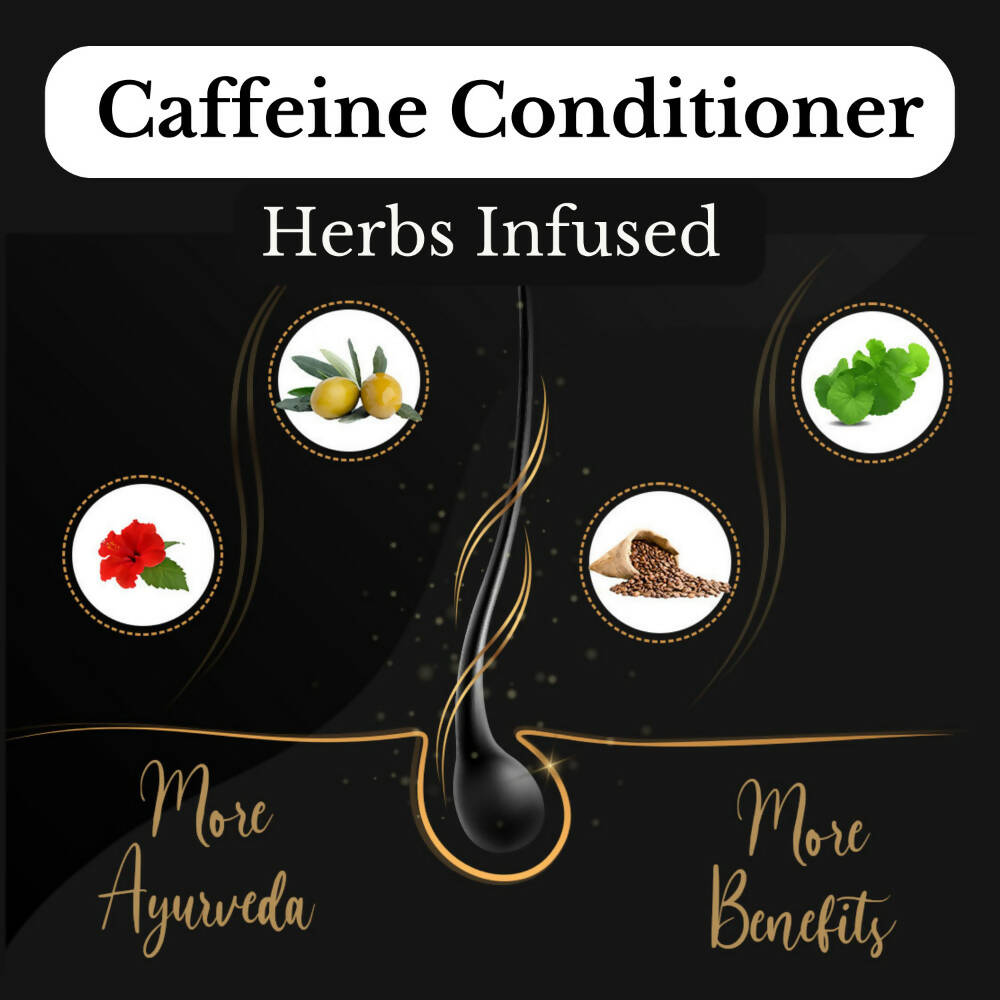 About the Product:Our Premium Herbal Intense Caffeine Conditioner is infused with Brahmi, Hibiscus, Aloevera, Fenugreek, Curry leaves, and Wheat grass extracts, perfectly formulated to condition medium-closed cuticles and grey hair. It helps reduce hair greying by restoring melanin, rebalances the hair's pH level, and is rich in antioxidants and protein. The conditioner is abundant in Beta-carotene, giving your hair a lustrous shine, softening dry and frizzy strands, fortifying cuticle bonding, and promoting the elongation of the hair shaft, reducing split ends.