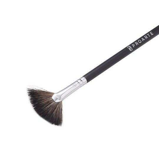 Experience the essential fan brush from Proarte, perfect for accentuating features, providing gentle definition, and sweeping away surplus product without leaving marks. This brush ensures accurate application of your highlighter on areas like the cupid's bow and brow bone. It's perfect for distributing loose powder across your skin.