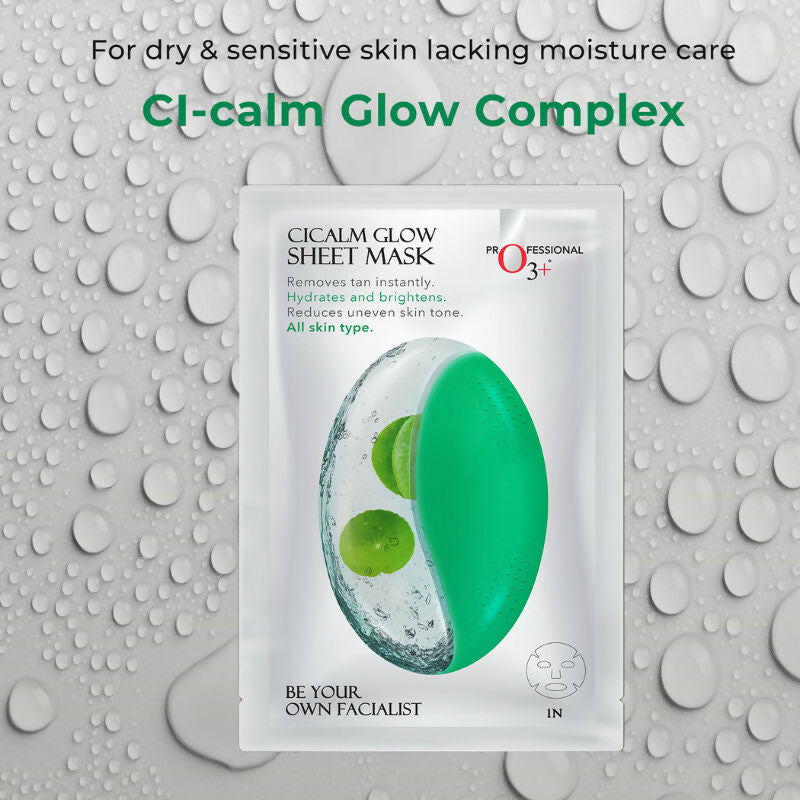 Professional O3+ Cicalm Glow Sheet Mask With Cica For D-Tan & Glow