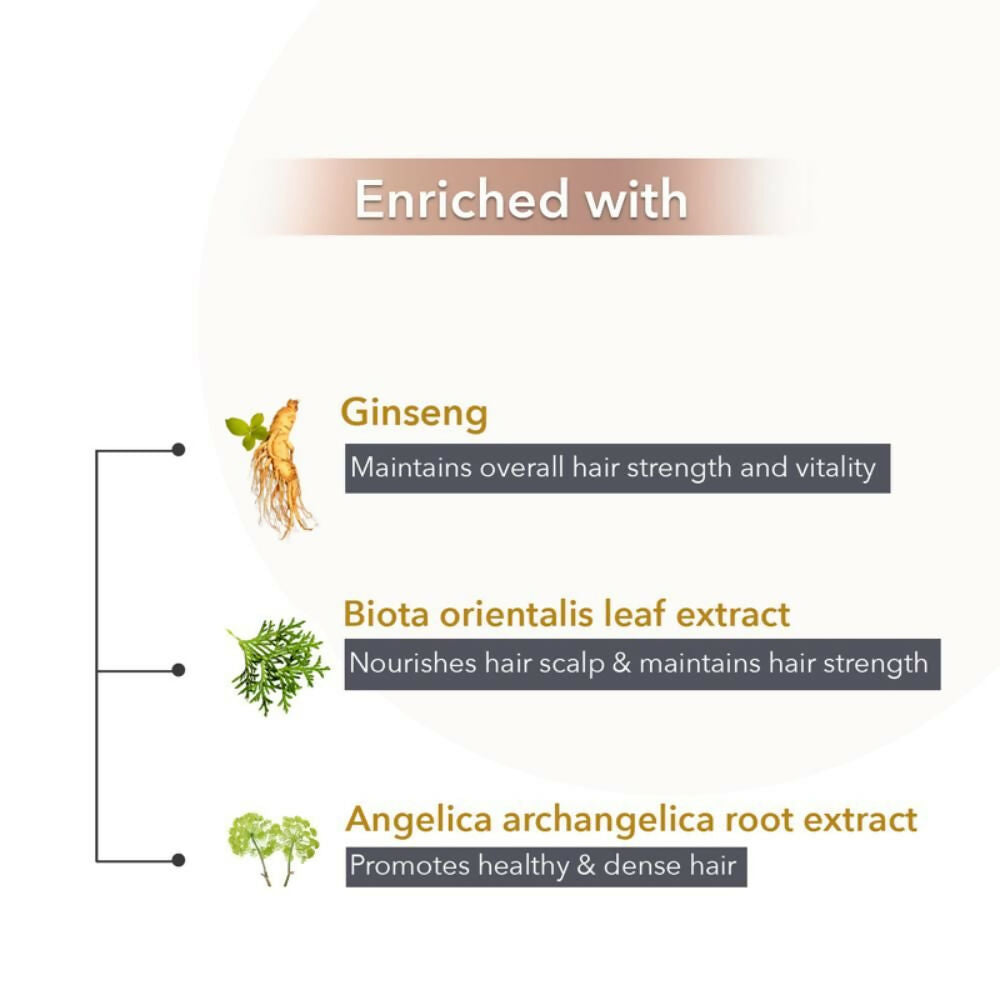 - Rejuvenate and Restore your hair with O3+ Men Densiderm Shampoo featuring a Triple Action Formula. This potent hair regrowth shampoo for men thoroughly purifies the scalp and hair while serving as a conditioner, boosting regrowth and minimizing hair loss. The O3+ Men Densiderm Shampoo is a dependable and eco-conscious hair regrowth solution, enriched with three essential ingredients: Biota orientalis leaf extract revitalizes the scalp, Panax Ginseng Root Extract fortifies hair roots, and Angelica Archangelica Root Extract preserves overall hair vitality and luster. Incorporate this hair regrowth shampoo into your hair care regimen and experience freedom from hair concerns.