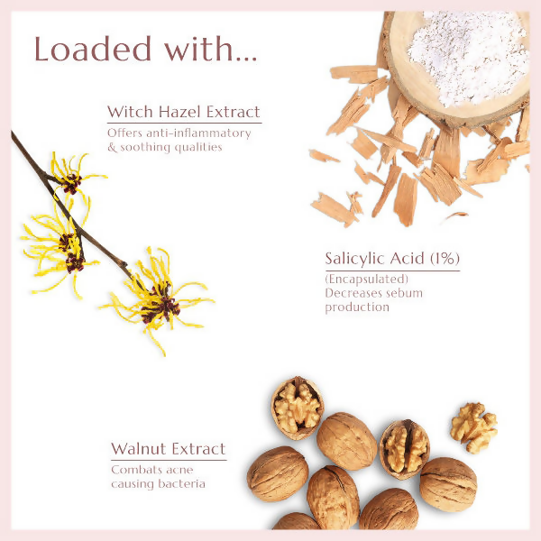 - Walnut Extract, Witch Hazel Extract, Salicylic Acid