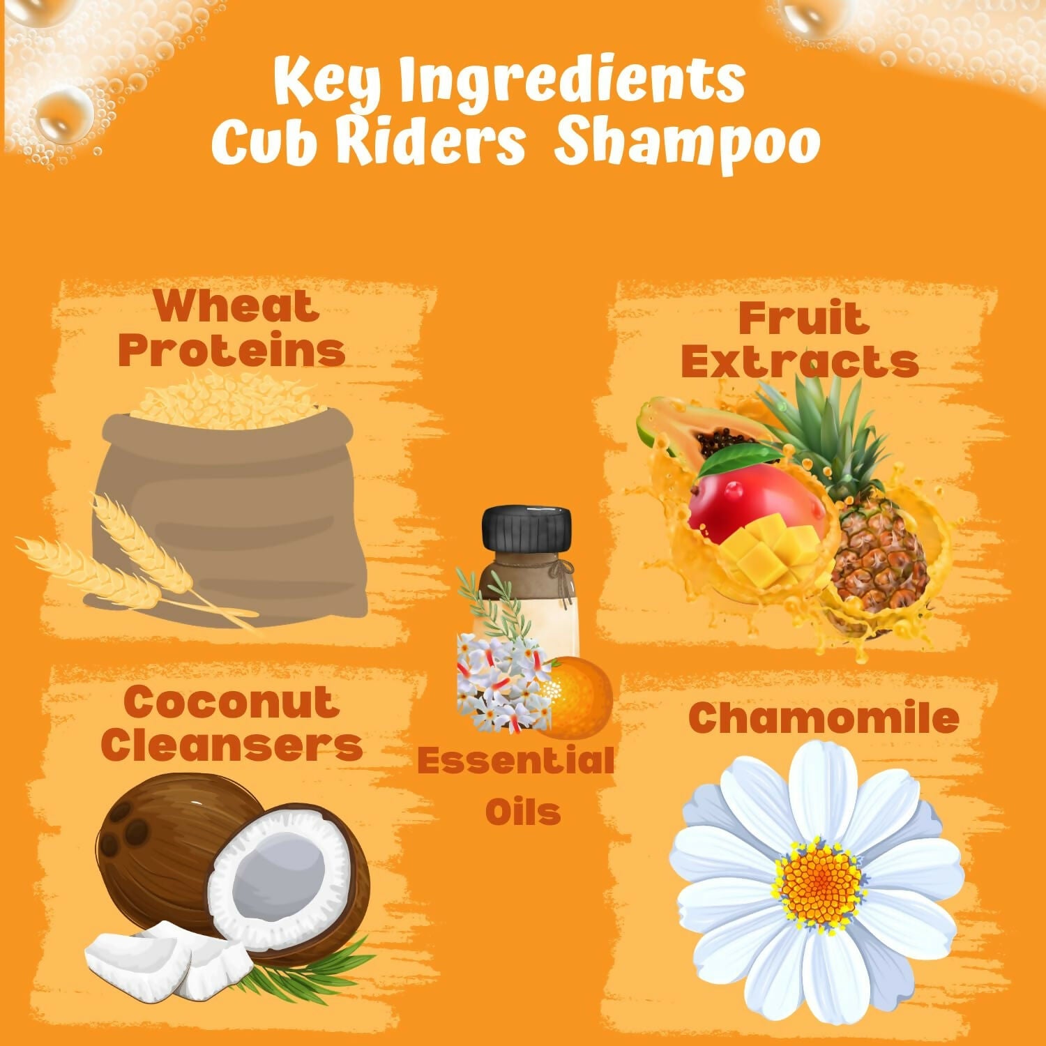 - Transform monotonous hair-washing into an enjoyable ritual! Our Cub Rider shampoo features captivating sweet orange fragrances that turn bath time into an exciting adventure. Allow your child to revel in the cheerful scent while achieving clean and manageable hair.