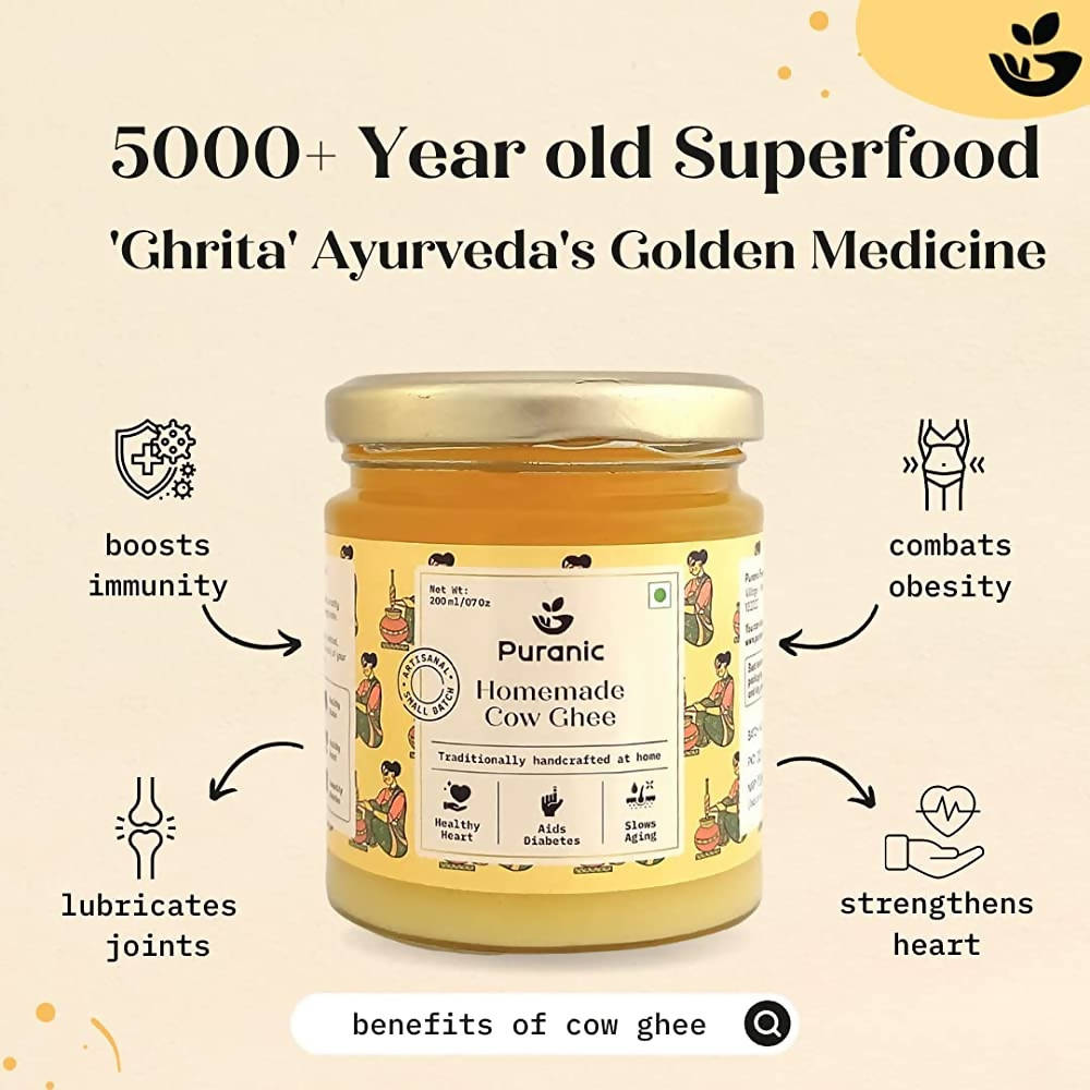 Puranic Homemade Cow Ghee | A2 Desi Cow Ghee | Homemade | Hand-churned using Bilona | Highly Nutritious