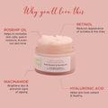 - This luxurious pink mask, featuring a soothing aroma and silky texture, is the perfect addition to your evening regimen, delivering a concentrated hydration boost for radiant and youthful skin.