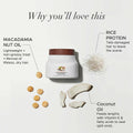 - Infused with the benefits of sustainably-sourced Macadamia Nut Oil, this hair mask tenderizes hair and enhances the luster of your locks