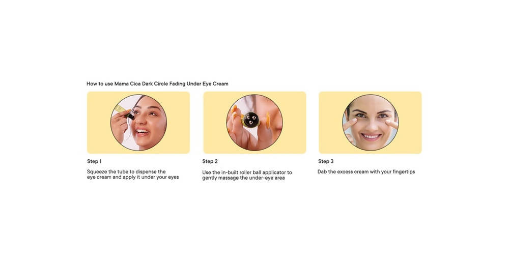 How to Use: Gently squeeze the tube to dispense the eye cream and apply it beneath your eyes. Utilize the built-in rollerball applicator to softly massage the under-eye region.