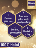 About the Product:- The Rania Youth Gold Lifting Toner rejuvenates the skin with its firming benefits. Utilizing Golden C-Lift Technology, it combines Vitamin C stabilized with Gold and Nano Gold 24K to micro-repair, ensuring skin remains youthful, firm, and elevated. Certified 100% Halal in both Malaysia and India, it is produced at the Rania Research Institute, the world’s leading Halal skincare R&D facility located in Malaysia. This alcohol-free facial toner is a calming, water-based formulation enriched with Rose Essence and Licorice Extract. It effectively soothes skin discomfort and significantly enhances skin hydration. Perfect for daily skincare rituals, it prepares and tones the skin, resulting in a refined, revitalized, and lifted appearance. Additionally, this facial toner hydrates for a smooth, petal-soft, and supple complexion. The Golden C-Lift Technology in this moisturizing toner incorporates advanced and potent age-defying and skin-lifting elements like Golden C and Nano Gold 24K. These components offer enhanced penetration into skin layers to tone and elevate the skin. Enriched with Golden C, a powerful antioxidant, it shields the skin from external aggressors and encourages regeneration. Nano Gold 24K, another key ingredient, efficiently restores elasticity and refines skin texture for a supple and lifted appearance. This product is vegetarian, free from parabens, alcohol, and mineral oils.
