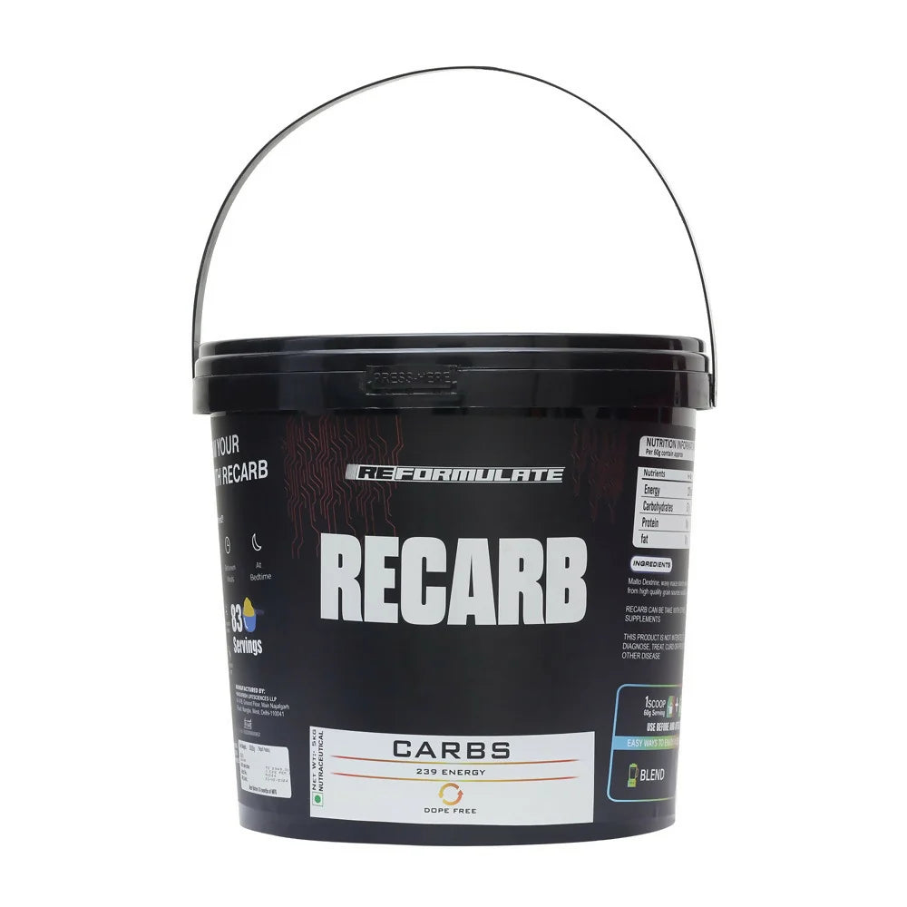 - Carbohydrate Content: 239 g. Energy Boost: Delivers a reliable source of energy for optimal performance. Safety: Completely dope-free, ensuring safe use for all athletes. Recarb is your go-to solution for replenishing carbohydrates and enhancing energy levels, supporting both recovery and endurance in an active lifestyle. Perfect for those seeking effective and safe supplementation.
