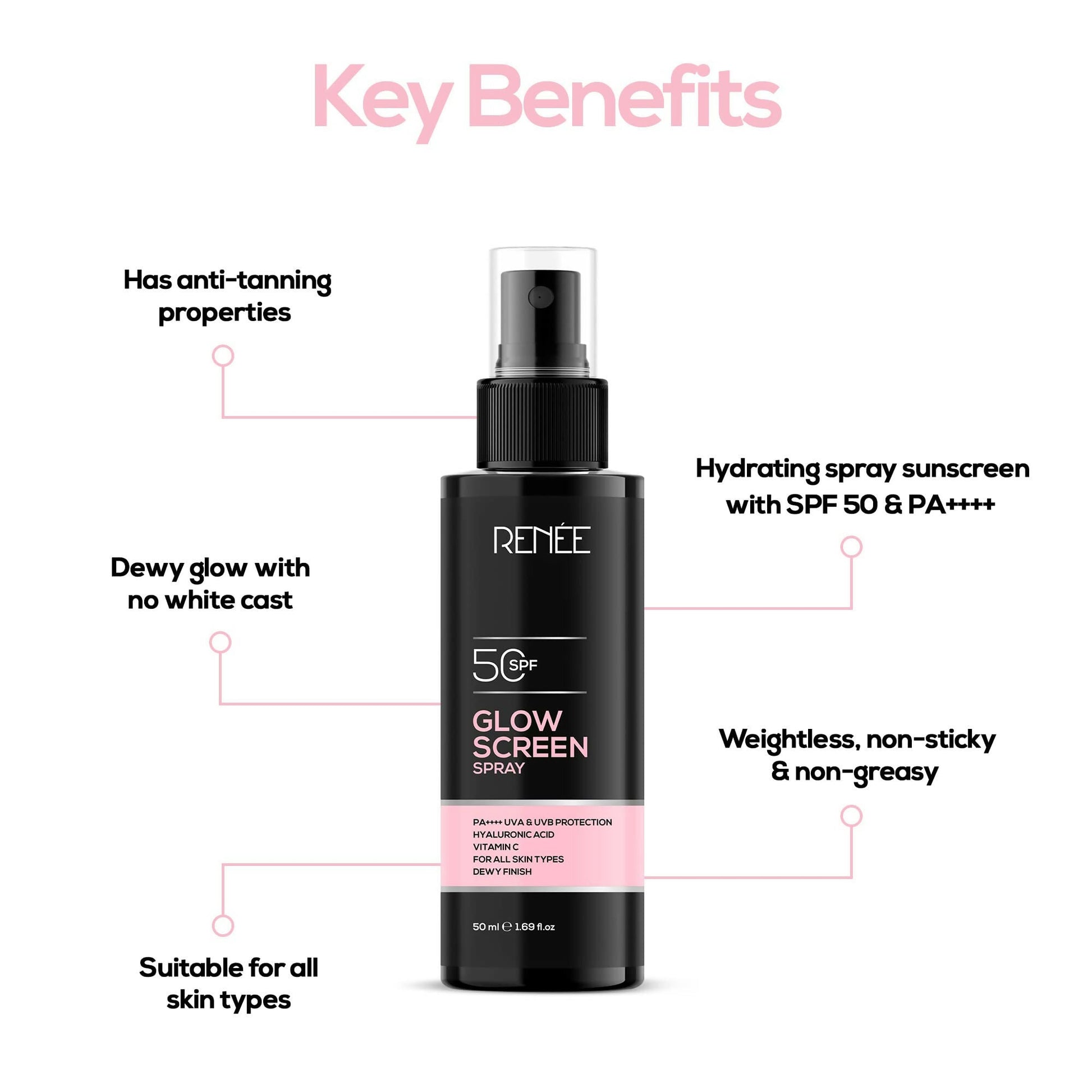 Renee Glowscreen Spf 50 Sunscreen Spray PA++++ Lightweight, Non Greasy & Quick Absorbing