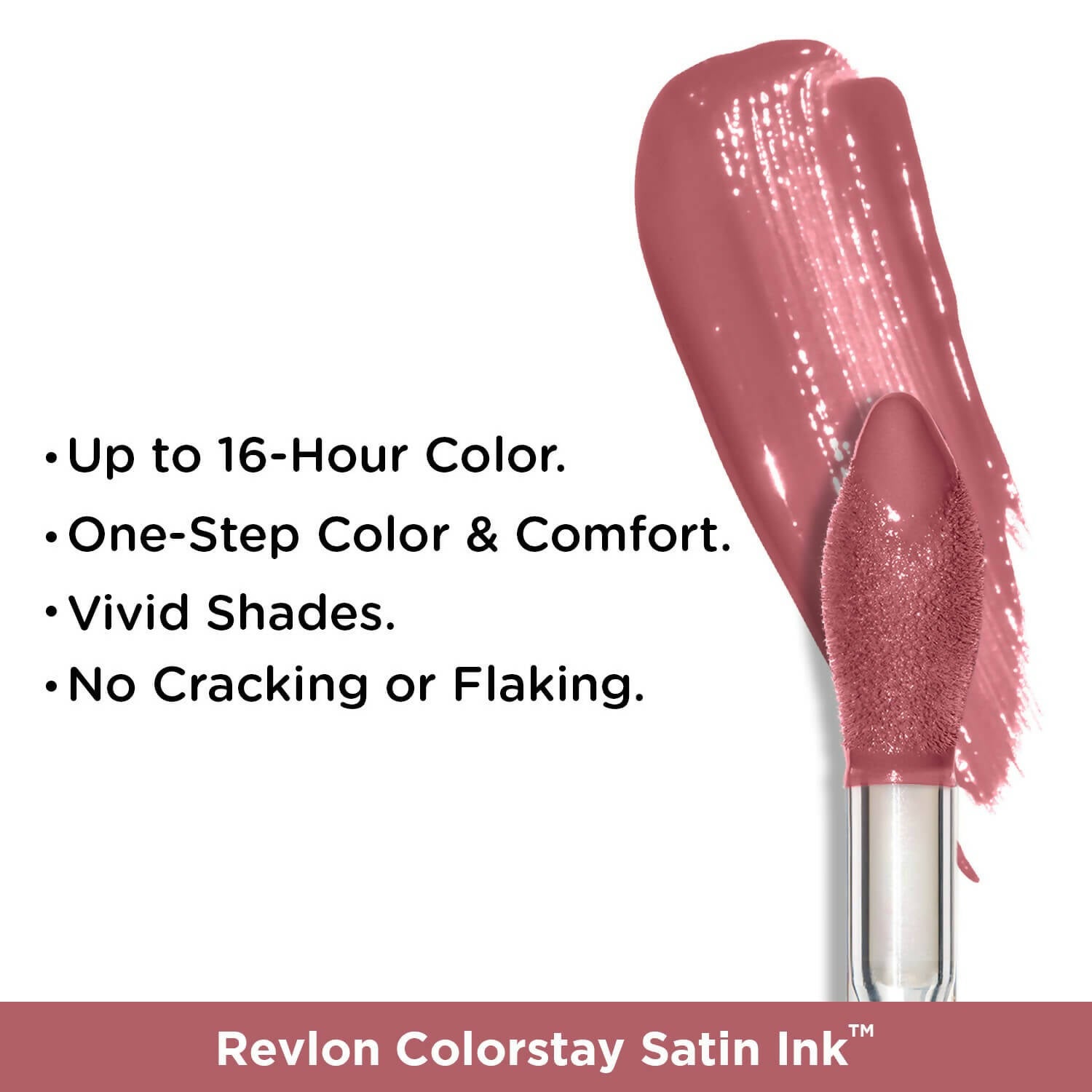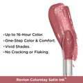 - The Revlon ColorStay Satin Ink Liquid Lipstick delivers a flawless and ultra-fine finish. Its smooth formula is perfect for long-lasting wear that remains intact without chipping or cracking. The satin ink texture glides effortlessly across your lips, providing a surprisingly soft finish.