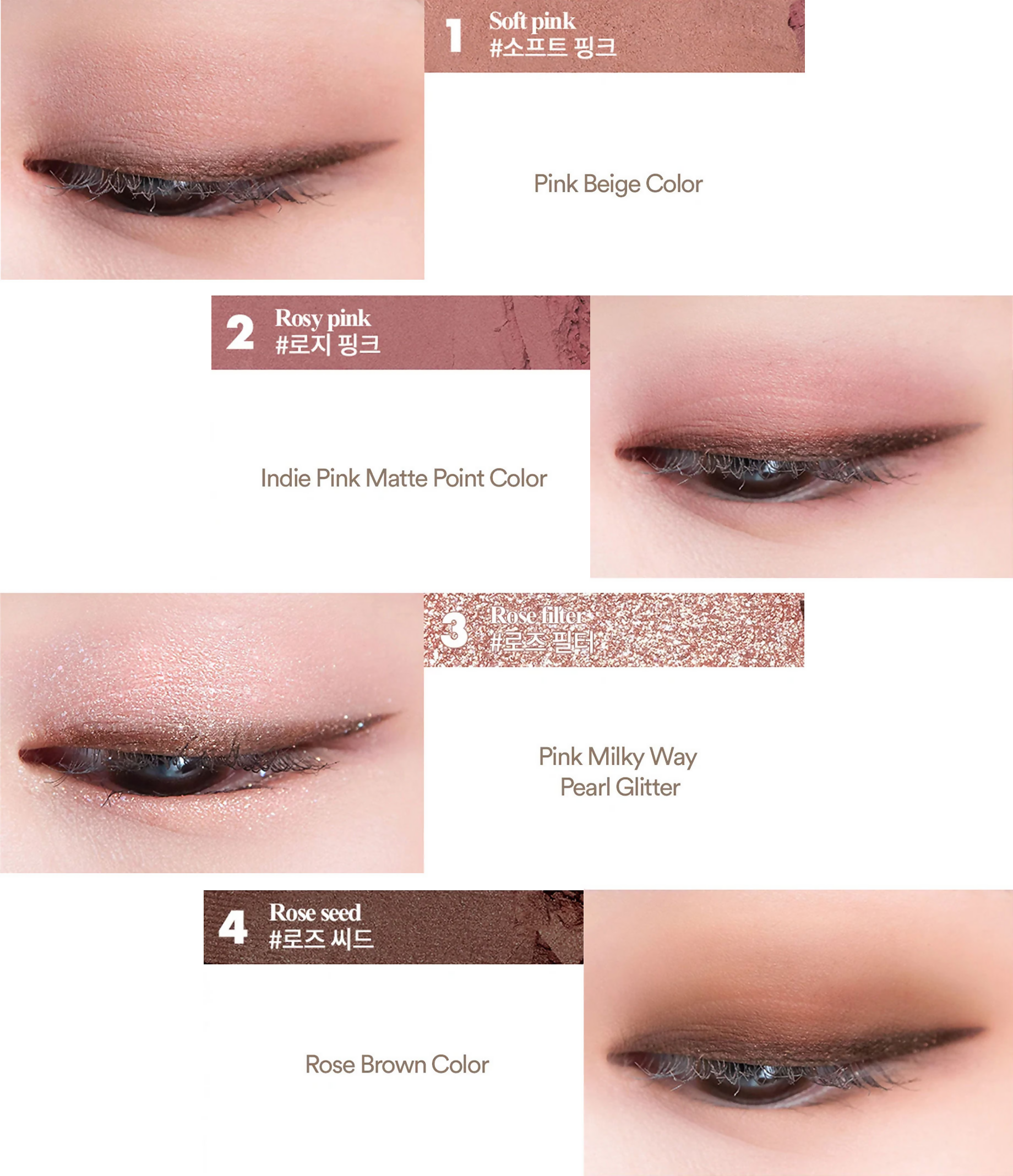 The Rom&nd Better Than Eyes eyeshadow palette offers a user-friendly, four-step eyeshadow collection. It boasts a buildable, non-creasing formula with richly pigmented shades, ideal for creating everyday looks wherever you go. The shadow's smooth and fine particles are crafted with oil-absorbing components, ensuring long-lasting wear. Perfect for oily eyelids and warm climates.