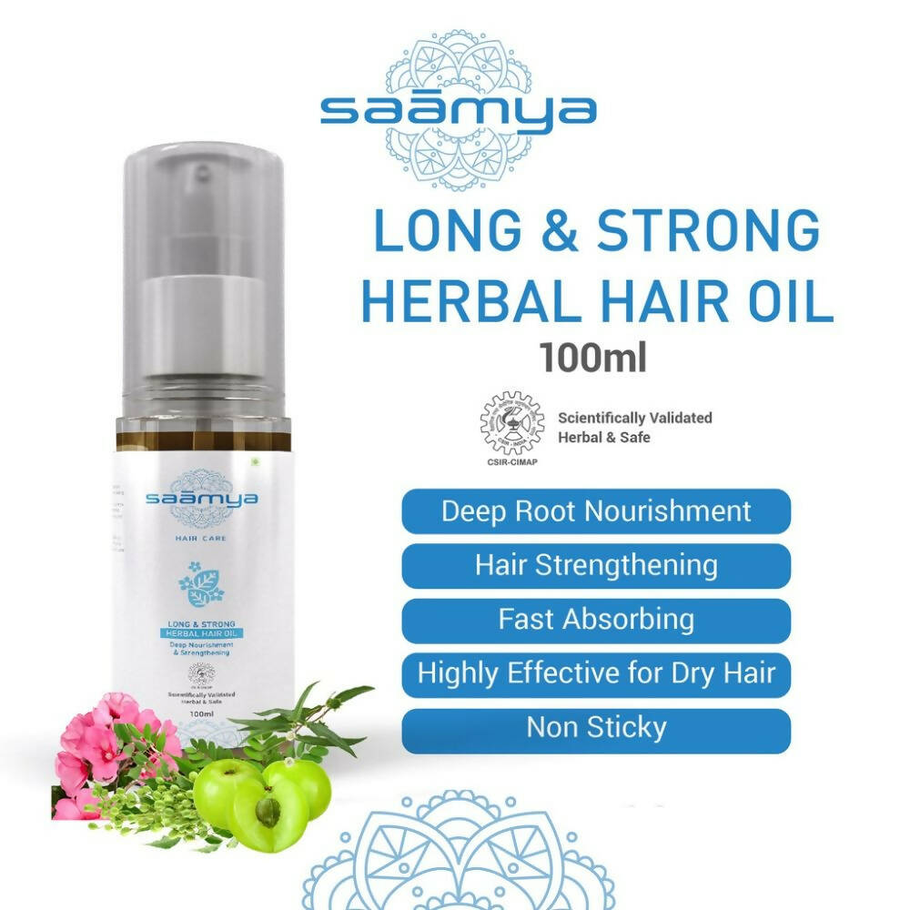 - Crafted with a distinctive blend of herbal, natural, and ayurvedic elements, Saamya Long and Strong Herbal Hair Oil serves as the perfect solution for nourishment, fortification, dry roots, and dandruff relief.
