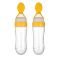 Safe-O-Kid Easy Set of 2 Squeezy Silicone Food Feeder Spoon (Soft Tip) Bottle- Yellow- 90mL