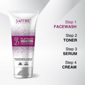 - Wet your face with water. Dispense a small amount of Saffire S7 Platinum Face Wash onto your hands, then apply to your damp face, gently massaging with your fingertips.