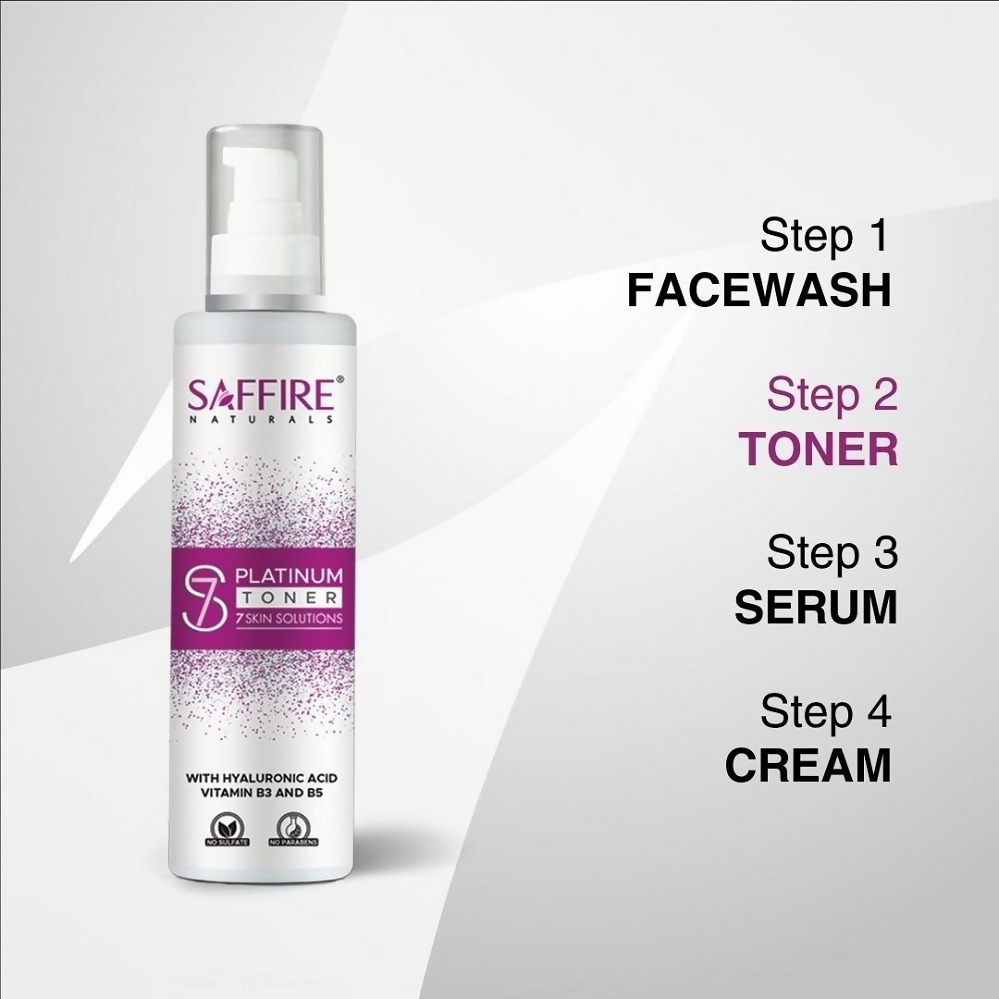 - Begin by cleansing your face with Saffire S7 Platinum Face Wash to eliminate any impurities or residue.