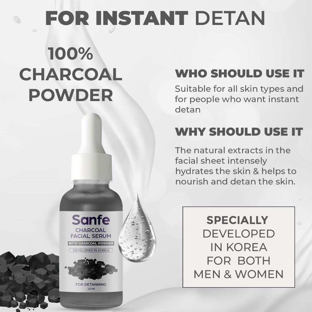 About the product:Reveal luminous, moisturized skin in merely 10 minutes with the Sanfe Charcoal Facial Serum. Formulated with charcoal and pure fruit extracts, it quickly rejuvenates and calms your skin, ensuring it feels soft and velvety.