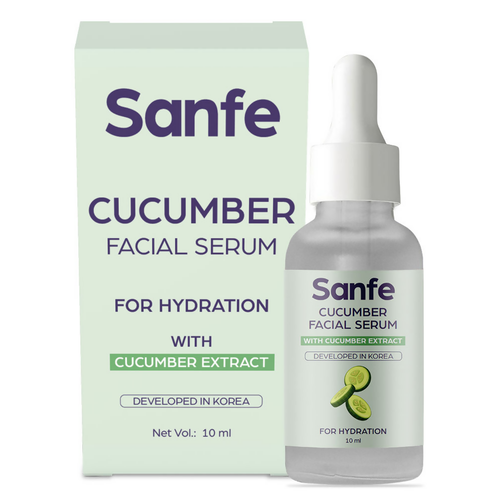 Revitalize your skin with the Sanfe Instant Hydration Cucumber Face Serum. Enriched with calming cucumber extract, this serum immediately refreshes and hydrates lackluster, fatigued skin. With nourishing ingredients such as aloe vera and green tea extract, it helps to alleviate redness and inflammation. Suitable for everyday use. Skin appears hydrated in 10 minutes. Experience visibly luminous skin within a week.